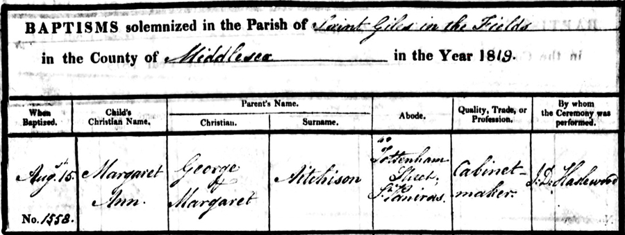 on the 15th August 1819 at the Parish Church of St Giles in the Fields.