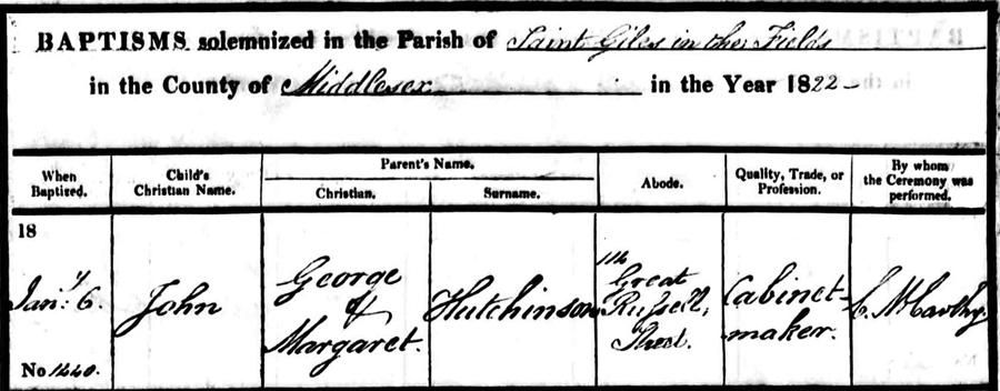 The certificate above shows John's Baptism. Note that his surname is incorrectly