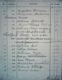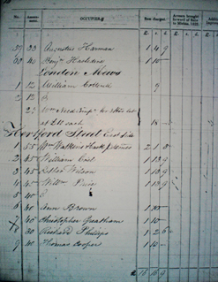 Aitchisons move into 5 Hertford Street St Pancras George and Margaret Aitchison were living in London since their marriage in 1817, and moved into 5 Hertford Street in 1824.The two Rate Book exstracts above both date from 1824. The left entry from January has 'E' written against number 5 which signifies that the property is empty. The right hand entry is from July and shows number 5 now occupied by George Hutchinson, which has been altered to correctly show Aitchison. ..............................................Click on these pictures for a larger image. The centre picture shows this part Hertford Street, which is now named Whitfield Street. Shown are numbers 5, 6, 7 and 8 running from right to left. ...................................Home | George's Story |