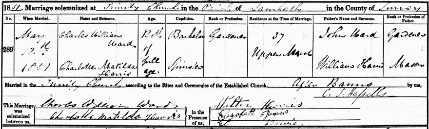 12th May 1851 Charlotte Matilda Harris married Charles William Ward at