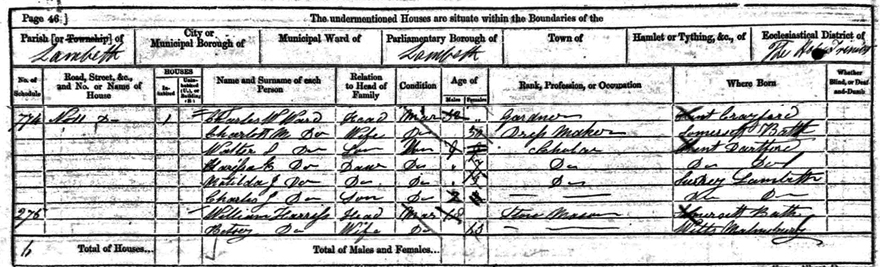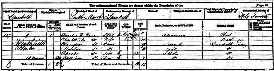 1871 census shows the family living at 9 Heathfield Place Lambeth. Charlotte