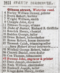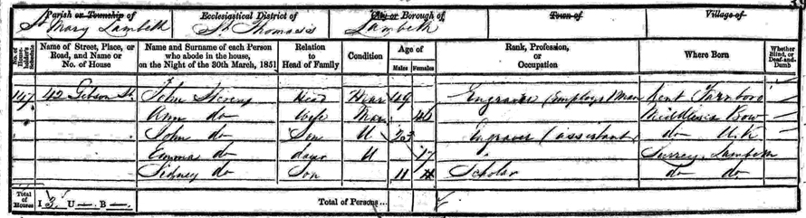 Terrace. By 1851 the family had moved to 42 Gibson Street Lambeth and