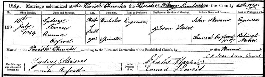 In 1858 Emma Stevens married charles Harris. Emma's younger brother Sidney