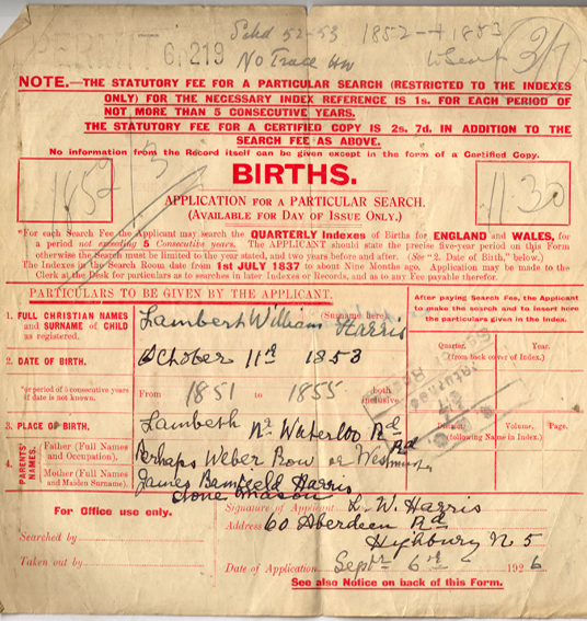 are shown as his parents and they were living at 37 South Street Lambeth.