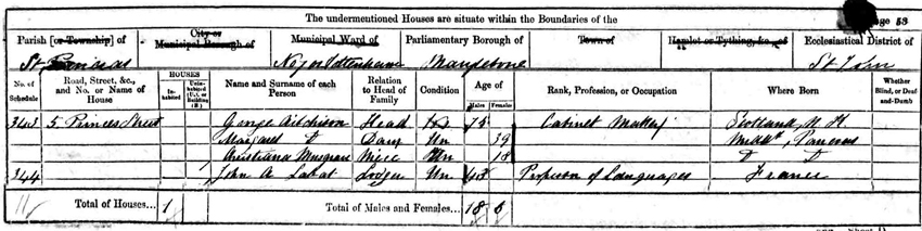 of Christiana Aitchison (The cabinet maker's daughter). She had married