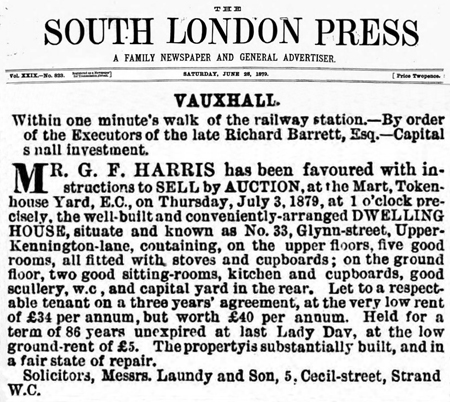By November 1869 the Musgrove's had moved to 33 Glyn Street, Upper Kennington