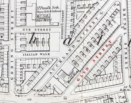 in the 1960's. The map below shows Glyn Street (coloured red) and the