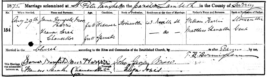 Banfield Moore Harris married again. On 29th August James married 38 year