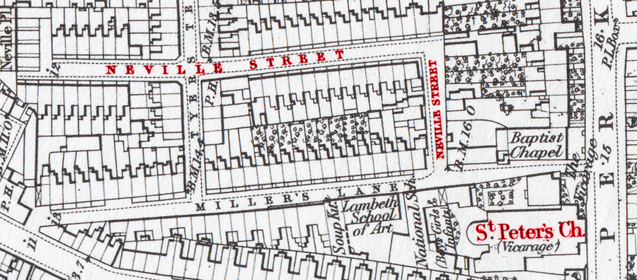 Lane Lambeth and the marriage is at St Peters Church and as the map shows