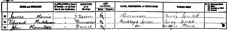 records James Harris as a Widower. At this time he was a patient at the