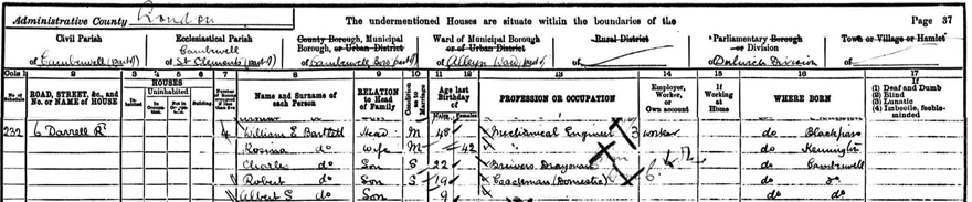 the 1901 census which shows the family now living at 6 Darrell Road Camberwell.