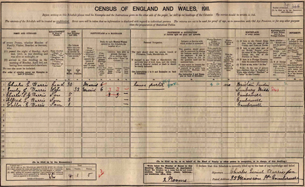 Harris is shown on the 1911 census in the same household as his parents. His family comprises at this time of hiswife Emily, and their children Charles Sidney G Harris