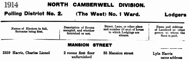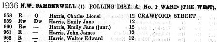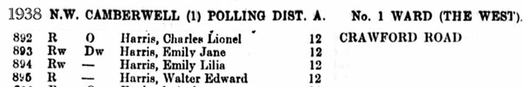 Harris and family are shown on the above 1936 Electoral Register. Not shown