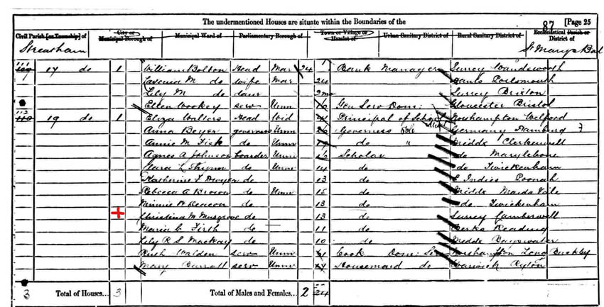 Essex Christiana remained as a boarder in Balham (possibly decided by Emily