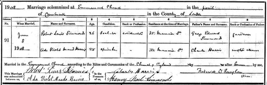Camberwell. Ada and Robert Simmonds had another two children, Florence L Simmonds