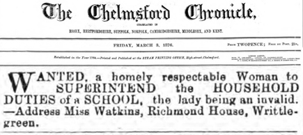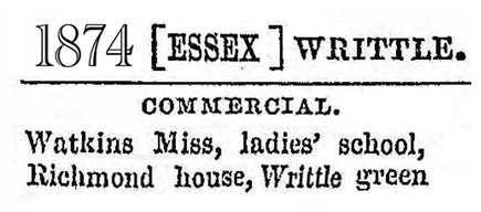 for young ladies ran by Elizabeth Watkins. Her father and brother ran a private boys school on the opposite side of the Green. The school had closed