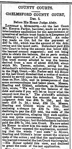 cutting centre is from The Essex Weekly News Friday, November 18 1887. The