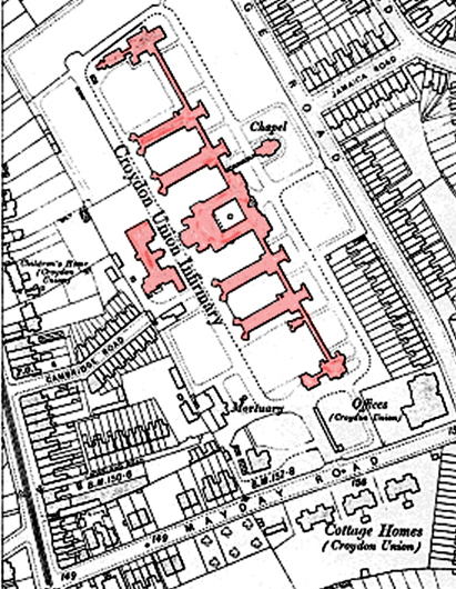 his family in the Workhouse and was a patient in the nearby Croydon Infirmary.