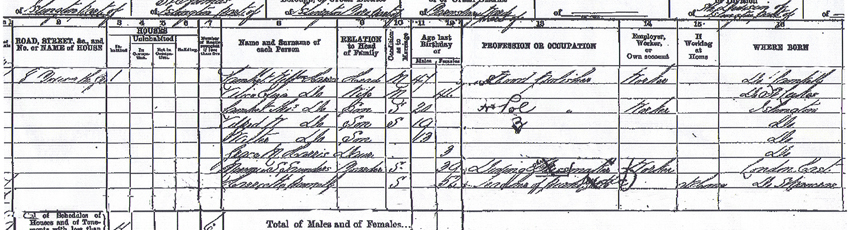 The census below dates from 1901 and shows the family now living at