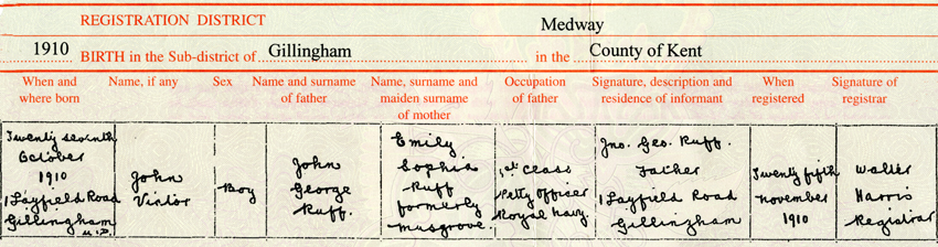 petty officer in the Royal Navy. His time in Gillingham with the family