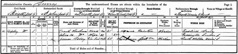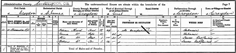 William and Emma Jane Hood are shown below on the 1901 census living in Croydon with