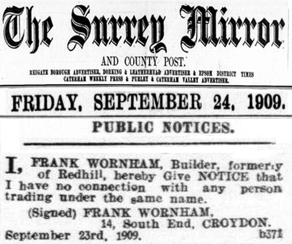 Frank Wornham's address, 14 South End, Croydon was actually The Dukes Head