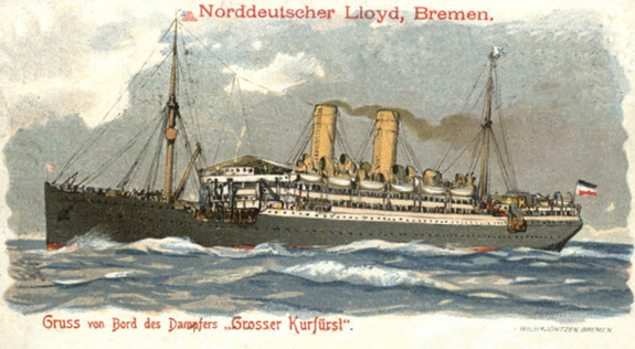 Frank Wornham and his bother in-law William Cyril Hood were the first to leave England, departing Southampton on the Nord Lloyd Bremen ship Grosser Kurfurst. The ship sailed 23rd January 1911. They arrived 10th March.
