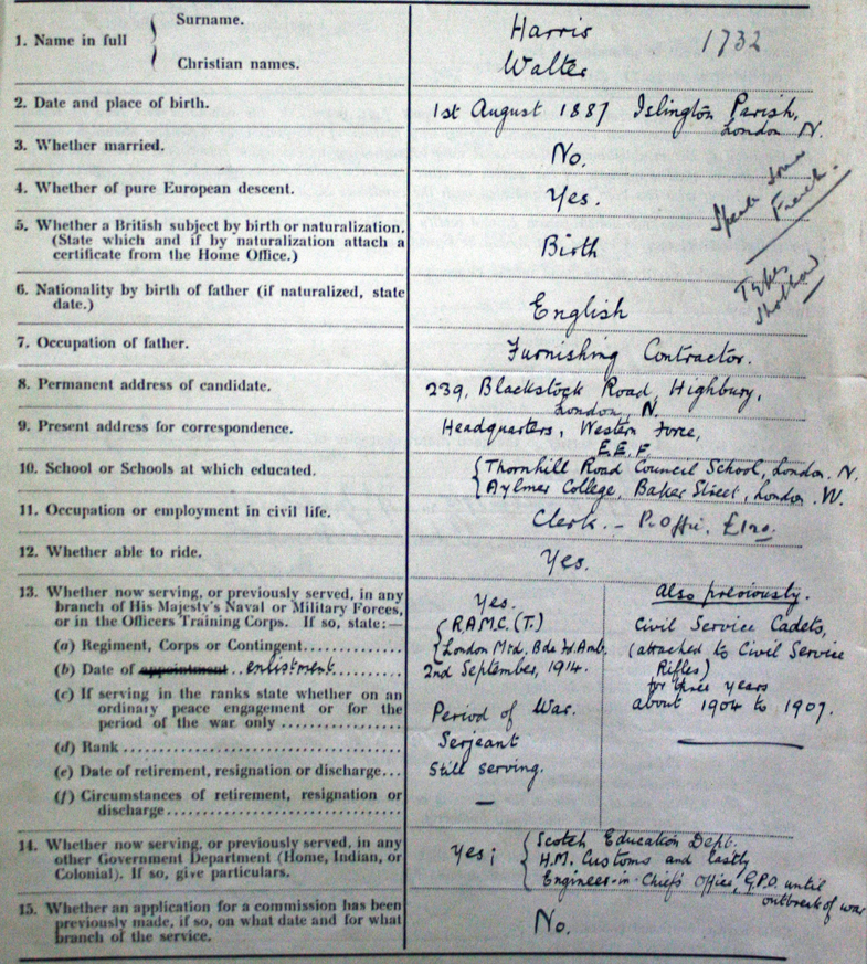 Walter was also a Civil Service Cadet and a serjeant in the RAMC.