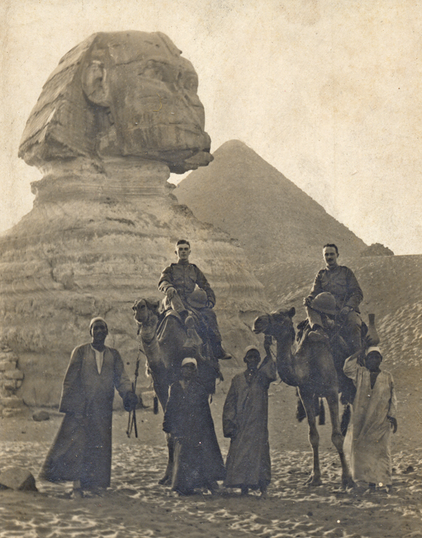 He is shown with a colleague below visiting the Spinx near Cairo.