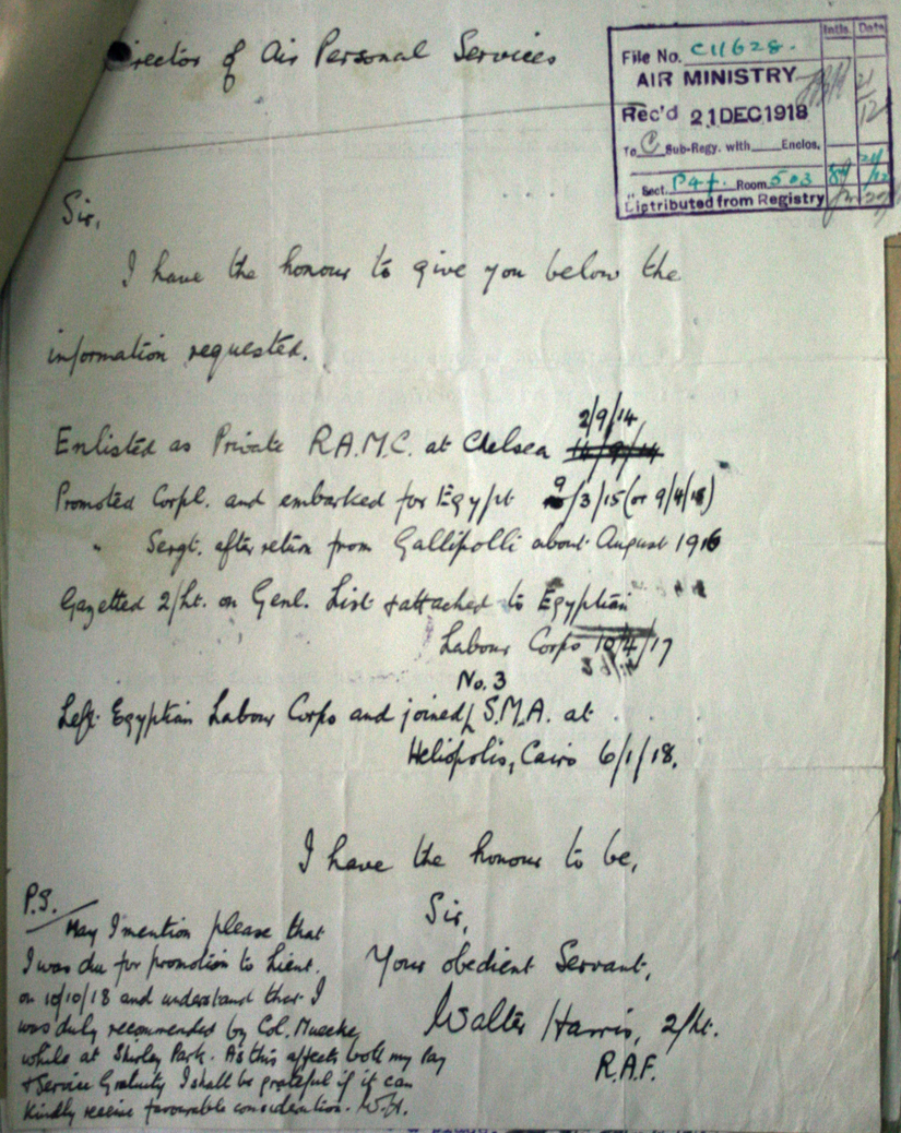 Walter left the Egyptian Labour Corps and joined No 3 School of Military Aeronautics at Heleopolis Cairo 6th Jan 1918.