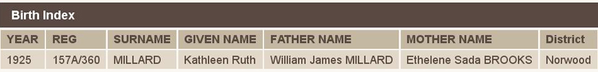 Kathleen. We do not know her name, unfortunately on-line South Australian Birth record indexes end in the 1930's.