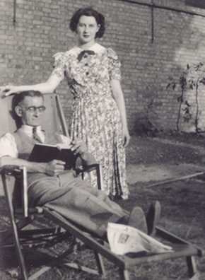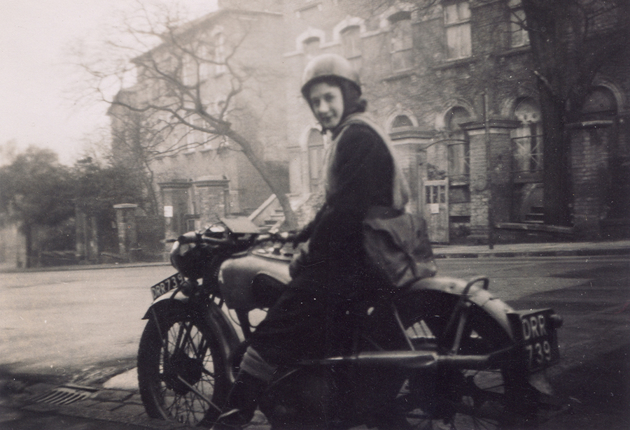 Musgrove as a State Registered Nurse The above photos date between 1947 and 1949. Click on the above pictures for larger images. Peggy is shown below from around this time with her father in the garden of 28 Highbury Hill. The photo below shows Peggy towards the end of WW2 when she worked as a dispatch rider for the Auxiliary Fire Service. Home | George's Story 3 |