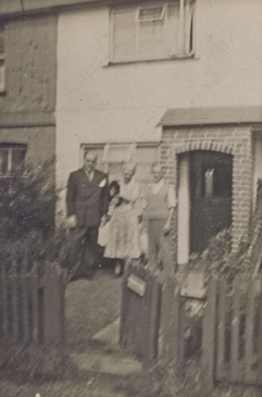 - 1952 Herbert & Ivy Musgrove at Lee Cottage Radnage Herbert and Ivy Musgrove while running the boarding house at 28 Highbury Hill had been looking for a weekend retreat in the countryside since about 1946. After plans to purchase a cottage in Old Amersham fell through, the couple purchased Lee Cottage in the village of Radnage Buckinghamshire. The photographs above were taken shortly after Herbert & Ivy moved in. On the left Ivy is shown holding her pet spaniel Sue with her daughter Peggy. On the right Ivy is joined by her husband Herbert and her brother Walter Harris. The centre picture shows Lee cottage present day. Note the various changes that have occurred over the last 60 years. The small grass front garden with it's wooden fence and gate have been replaced by a featureless concreted over car park area. The windows both upstairs and downstairs have been changed and the porch updated. The house next door has had replacement windows and a modern porch extension. The map below shows part of Radnage. Lee Cottage is located in the part known as The City, on the north side of the road above the letter 't' in City. .............................Home | George's Story 3 .............Click above images for larger pictures |