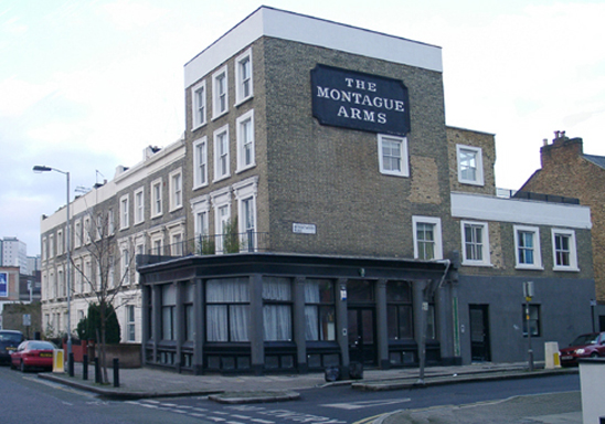 George & Emily lived just along on the opposite side of the road to the Montague Arms in 1882 at 57 Benwell Road. Amazingly the building is still there. Bad bombing see (more of G & E) destroyed most of the odd side also damaging the even side. The pub sign is the same but the window has been moved. The balustrades and mouldings on the roof probably became unsafe and had to be removed. The pub is now flats called Montague House. The photo taken in 1910 was almost certainly as it was in 1870 so it has changed little in 130 years but is less elegant and nice detail has been lost.