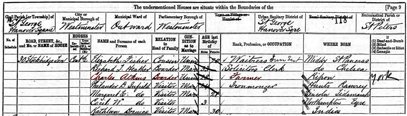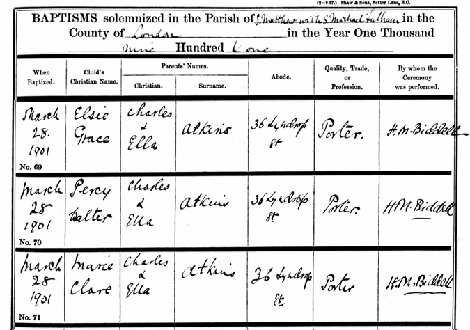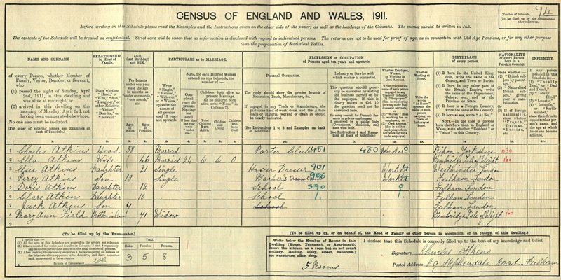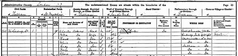 By 1901 the Atkins family had moved to 36 Lindrop Street Fulham