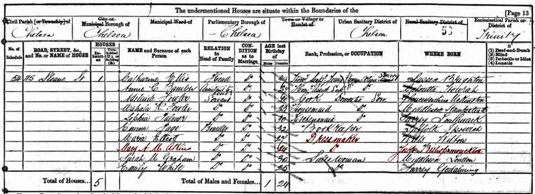 census as a 14 year old visiting a family in Bute Street Chelsea.We do not know