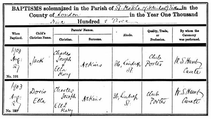 During 1901 to 1903 Charles and Ella Atkins baptised 5 of thier 6 children.