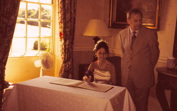 Digby daughter of John Digby and Jane Digby (nee Hall ) grand daughter of Jack Digby and Lillian Digby (nee Barrett) married Michael Pelling on the 14th August 2003 after a long courtship. Left; Mike & Alison at Alison's Great aunt's 90th party. Top left; Alison with her father John Digby. Top right: Mike and Alison sign the register. Home|Jack|Marbelle|Relations |