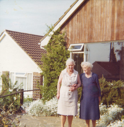 Musgrove at Broadoak Heathfield Sussex Ivy moved from her flat in Silverdale Road Eastbourne to 8 Mayview Close Broadoak in 1975. Her bungalow is shown above shortly after she moved. The right hand photo photo shows Ivy (left) with her sister in law Adelaide. Home | George's Story 3 |