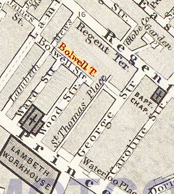 17 Bolwell Terrace, Bolwell Street Lambeth. The census was taken