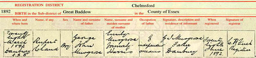 Birth of Rupert Musgrove at The