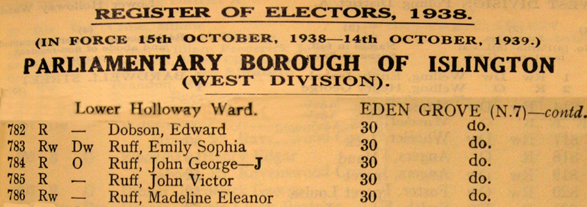 The above Electoral Register from 1938 shows the Ruff family at 30