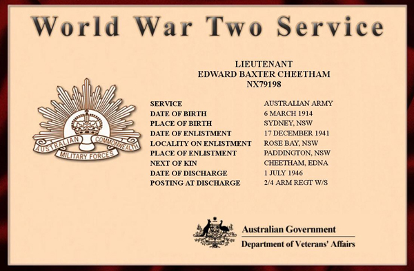 Edward Baxter Cheetham Joined the Australian Army 17th December 1941 for service during