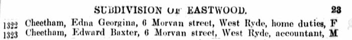 The 1949 Electoral Register shows Edna and Edward living at 6 Morvan Street West Ryde,