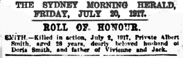 Sadly private Albert Smith was killed in action during the Great War in Belgium.