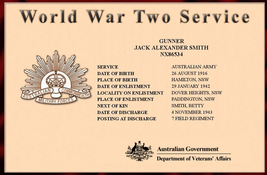 Australian Army from 29th January 1942 to 4th November 1943 when he transferred