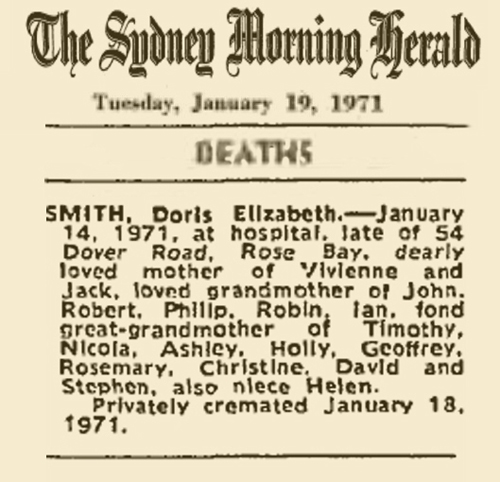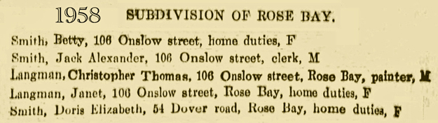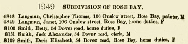 husband Jack is listed separately at 50 Lancaster road Rose Bay. His mother is now living
