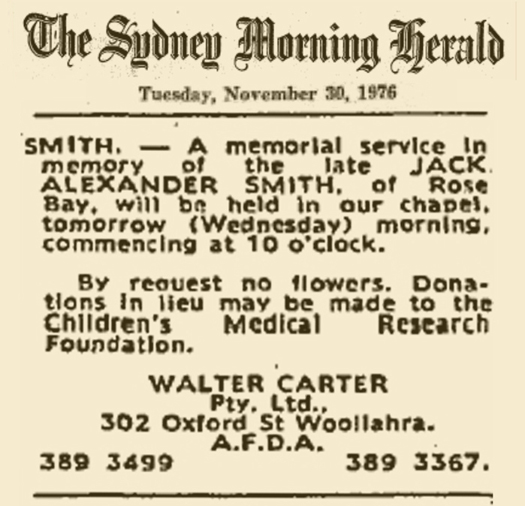 In 1976 Jack Alexander Smith died aged just 60. We have no other details of