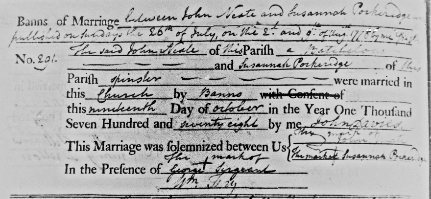 John Neate married Susannah Pockeridge on 19th October 1778 at the parish