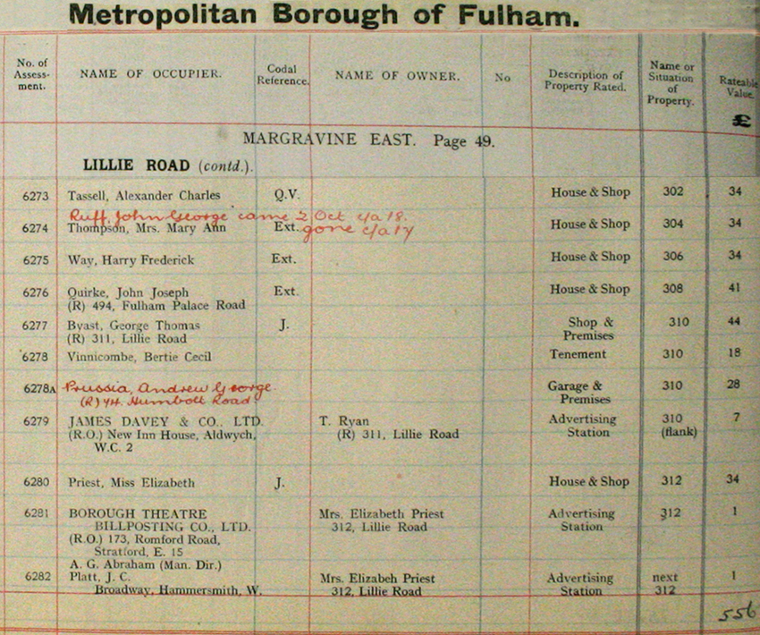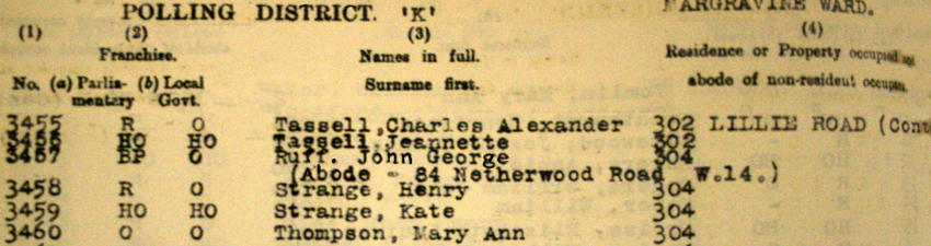 Occupier at 304 Lillie Road. Added in hand written red ink is John